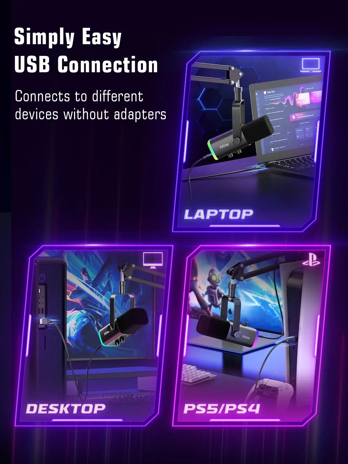 Microphone Dynamique SetupX AM8T – Kit XLR/USB avec Bras Articulé et RGB
