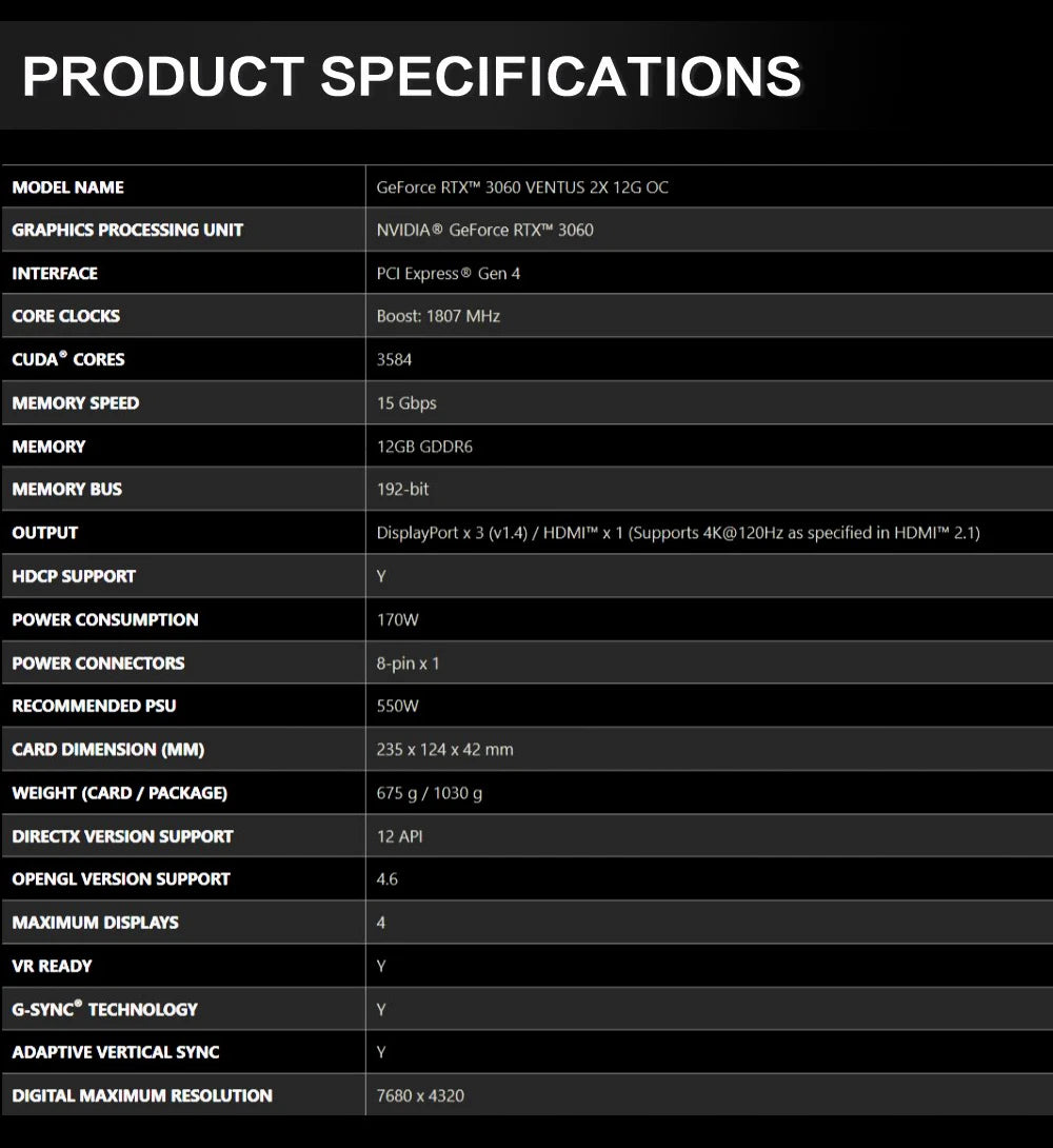 GPU : NVIDIA GeForce RTX 3060 Ventus 2X 12G OC