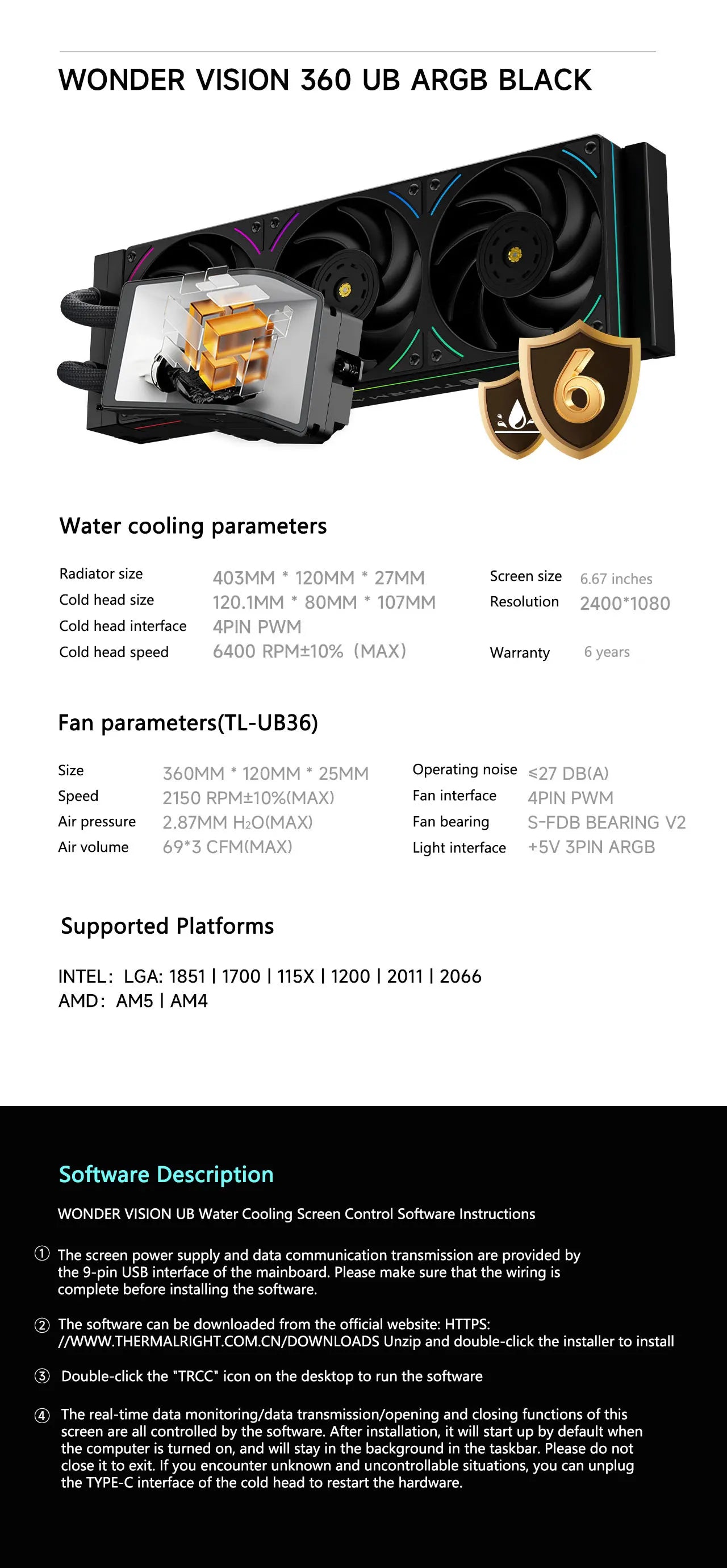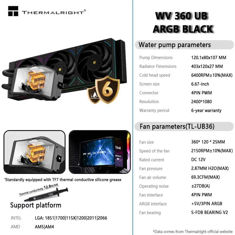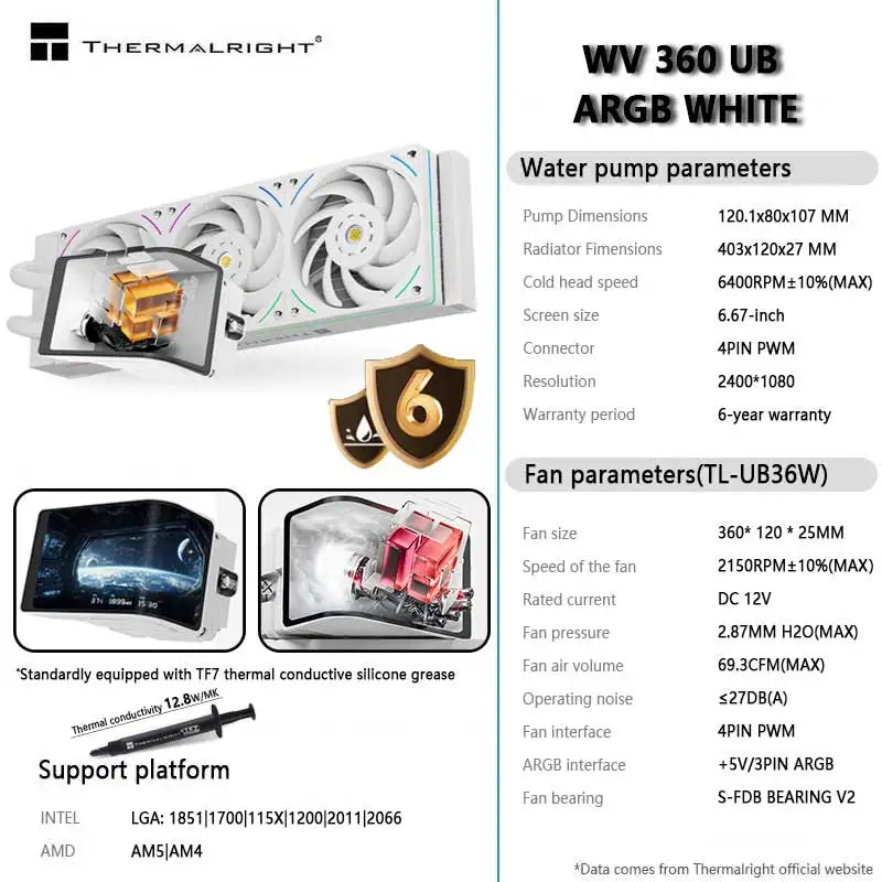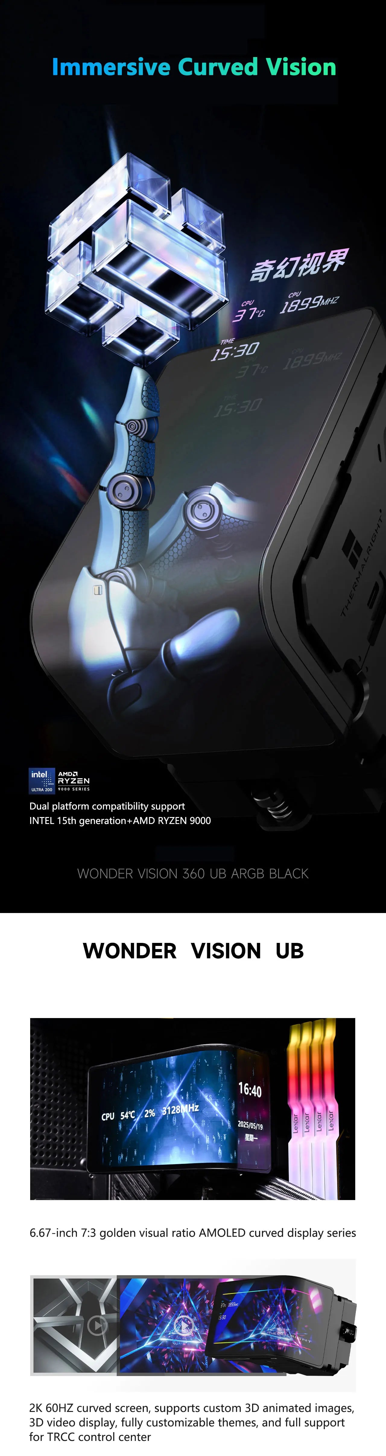 Thermalright WONDER VISION 360 UB All-in-one 360MM Water Cooler 6.67 inch AMOLED LCD 2K 60HZ Curved Screen Naked Eye 3D Vision